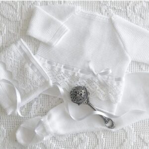 Precioso conjunto punto blanco toca y saco a juego tallas 00 hasta 12 mes