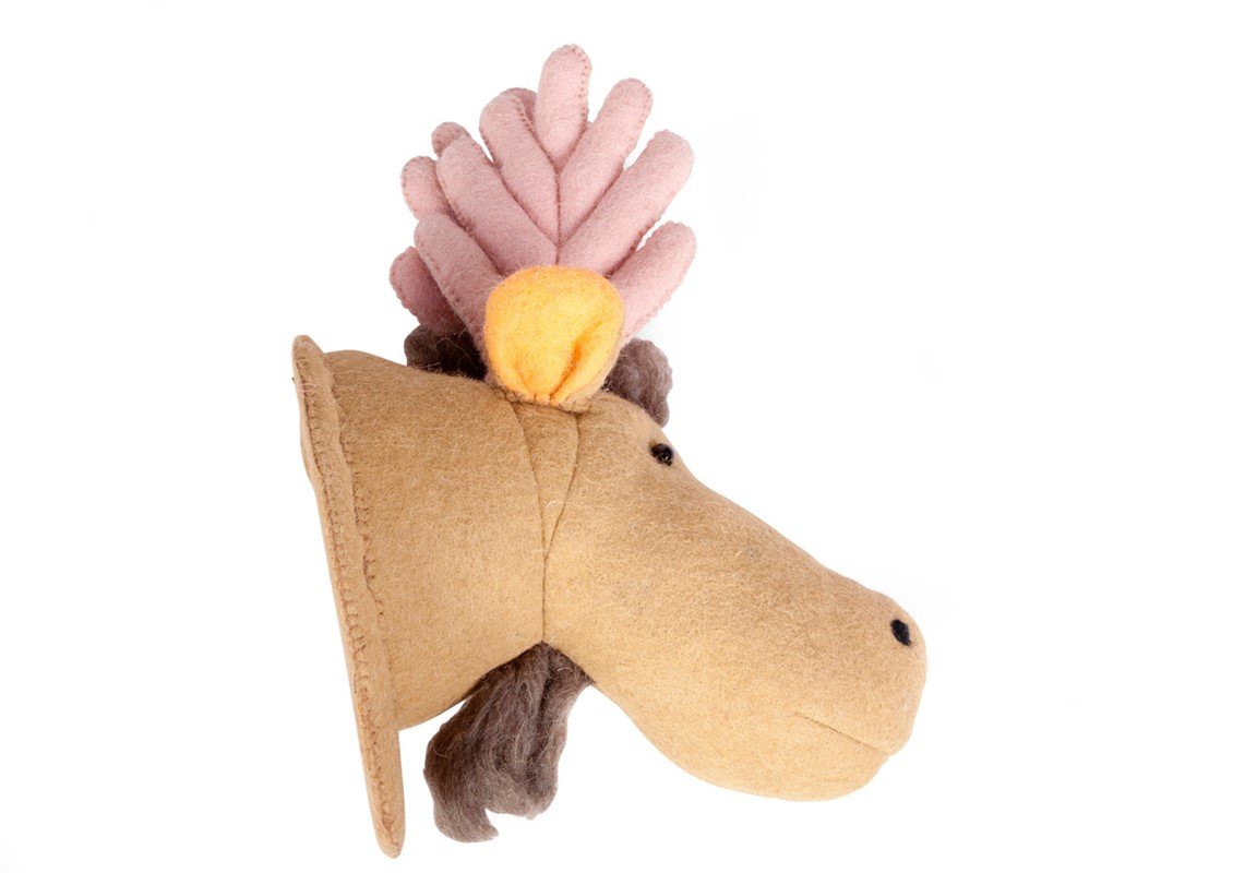 La cabeza de animal Esta decoración de pared con relleno suave tiene una espalda dura y es fácil de colgar en la pared. Este juguete es verdaderamente atractivo y hermoso para los pequeños amantes de los amimales.