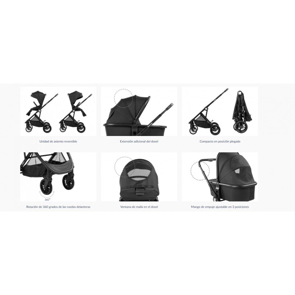 Accesorios incluidos: Cubrepiés en la unidad de la silla de paseo, cubrepiés en el capazo, adaptadores para la silla de coche, bolsa para mamá, portavasos.