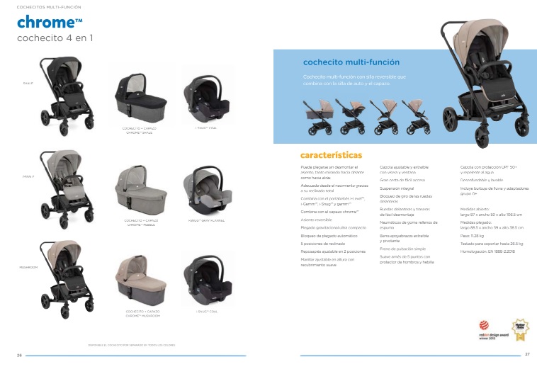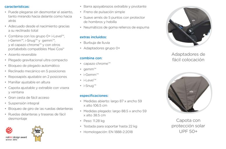 Carrito Joie Chrome 3 piezas o separado en 2 colores
