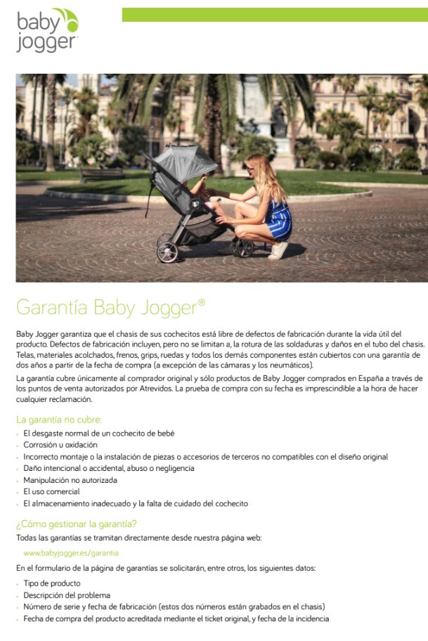 • Posibilidad de acoplarle un capazo Baby Jogger o una silla grupo 0