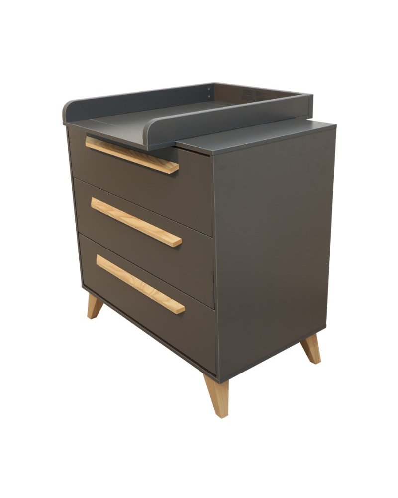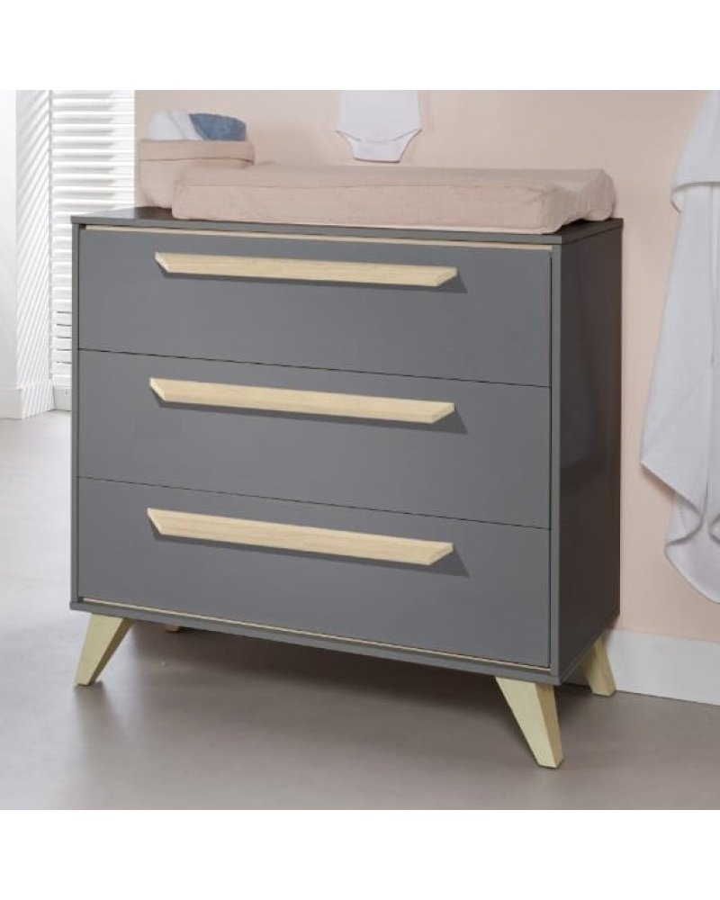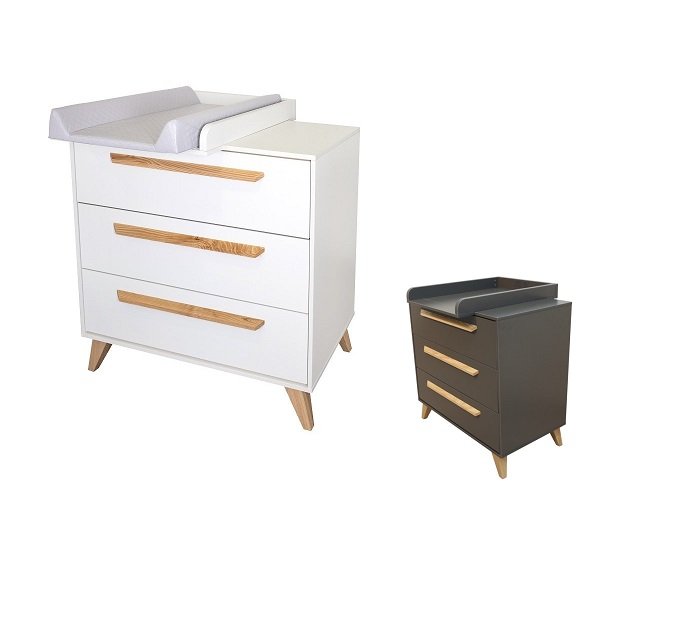 Es una cómoda de estilo nórdico, ideal para la habitación de tu bebé. Además de sus amplios cajones para ordenar su ropita de forma cómoda y ordenada. También cuenta con una base de cambiador de madera a juego que te permite cambiar el pañal o ropita de tu bebé en la propia habitación de tu bebé.