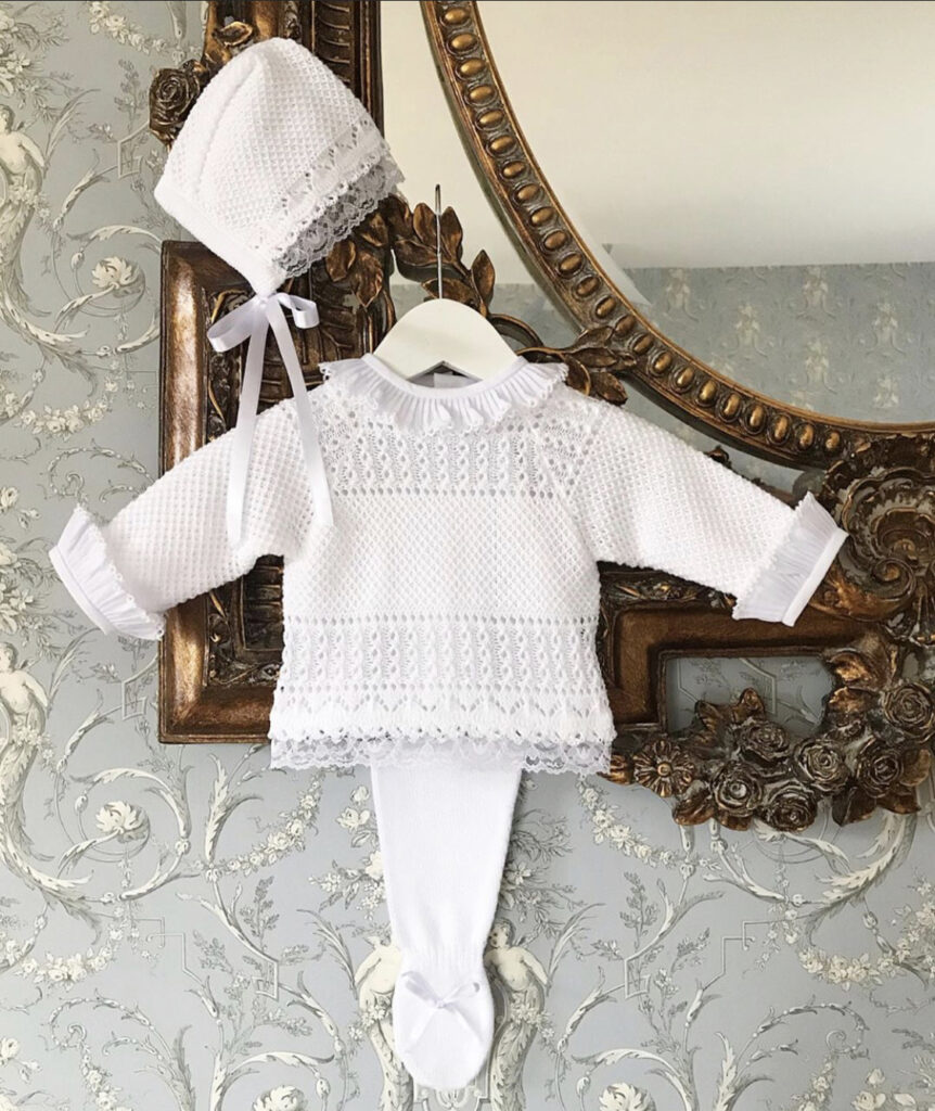 Conjunto 3 piezas Blanco Encaje Ceremonia Se fabrica solo en HILO .