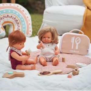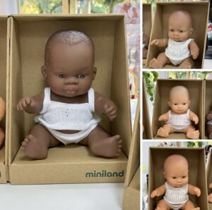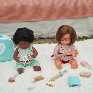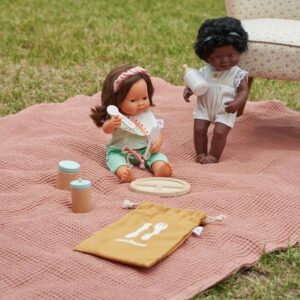 Colección de ropita y accesorios para muñeco recién nacido. Incluye las prendas y complementos más habituales en situaciones cotidianas del bebé como la hora del baño, la siesta o el paseo. Con diferentes tipos de abroches para ayudar al desarrollo de la psicomotricidad fina.
