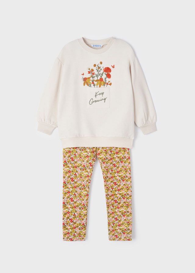Conjunto leggings con bolsillo Grabanzo 2-9A , dos piezas estampado floral algodón suave en tacto ideal diario