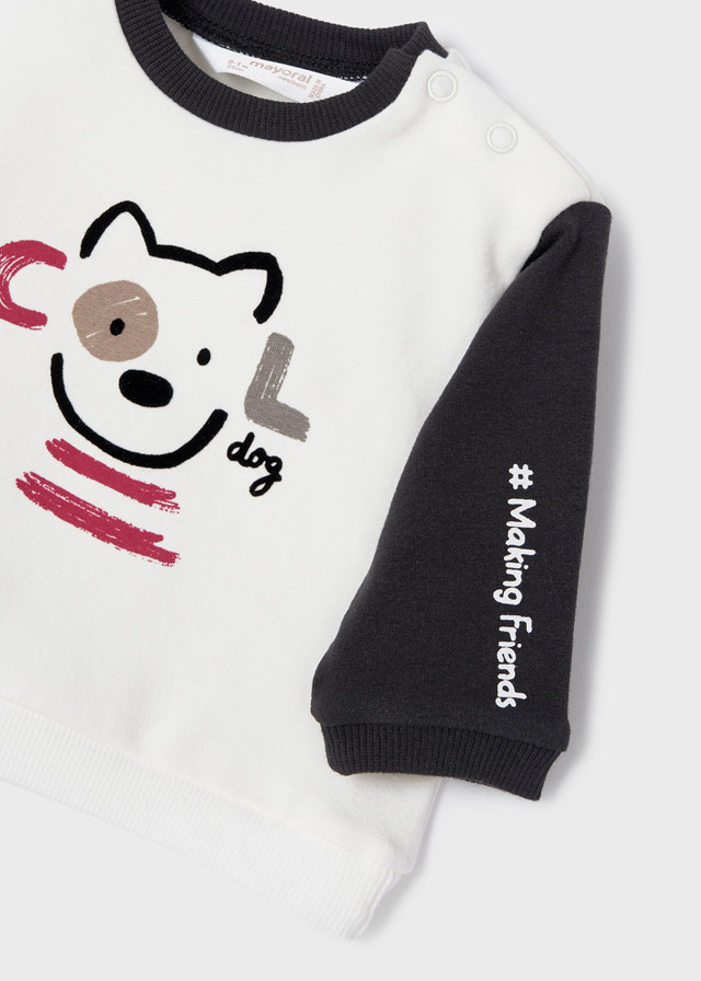 Sudadera de manga larga para recién nacido. Cierre con botones a presión en el hombro para facilitar la puesta de la prenda.