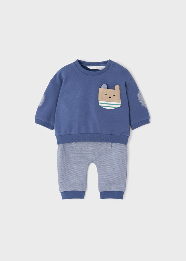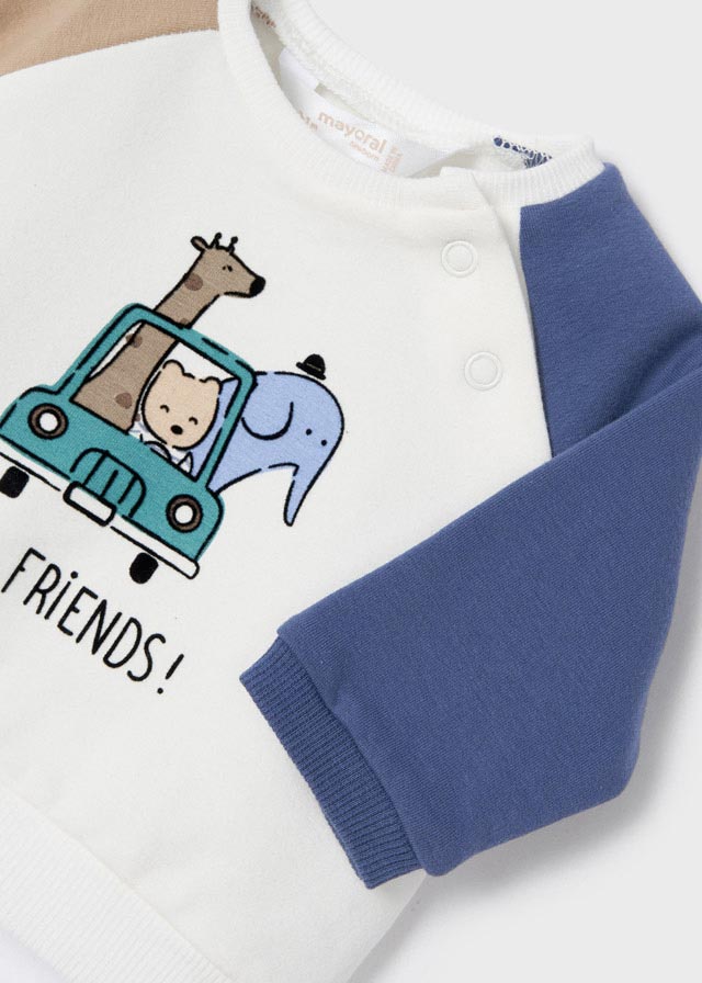 Sudadera de manga larga para recién nacido. Cierre con botones a presión en el hombro para facilitar la puesta de la prenda.