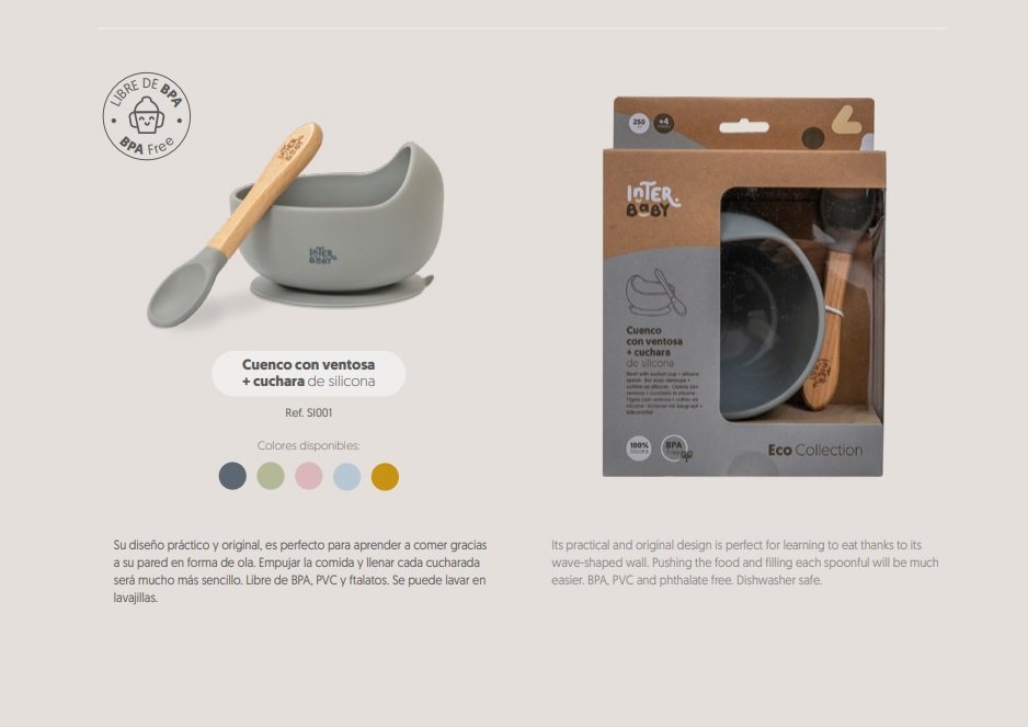 Cuenco con ventosa y cuchara silicona alimentaria