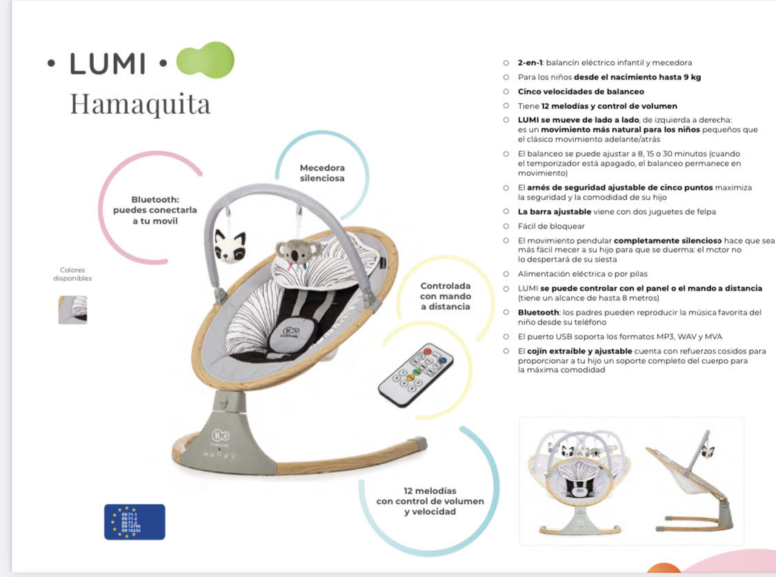 LUMI es una mecedora-hamaca eléctrica que, a diferencia de otras mecedoras, mece al niño de forma oscilante en lugar de hacia adelante y hacia atrás