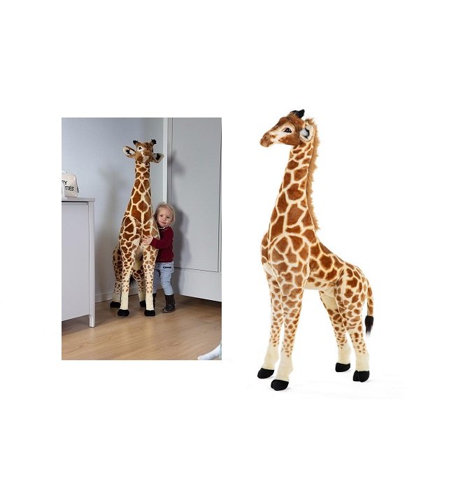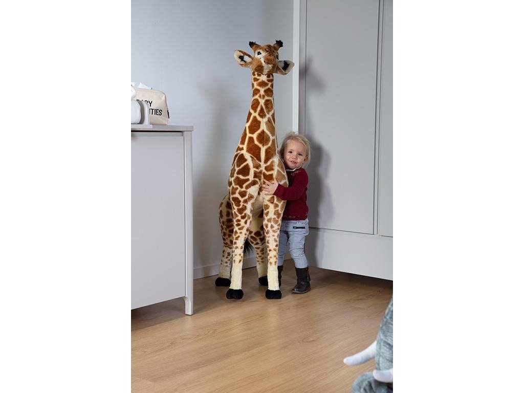 Jirafa gigante de peluche 135cm accoms De 135 cm de alto dará un toque chulísimo y salvaje a cualquier habitación. Para jugar o como simple decoración lo adorarán pequeños y grandes.