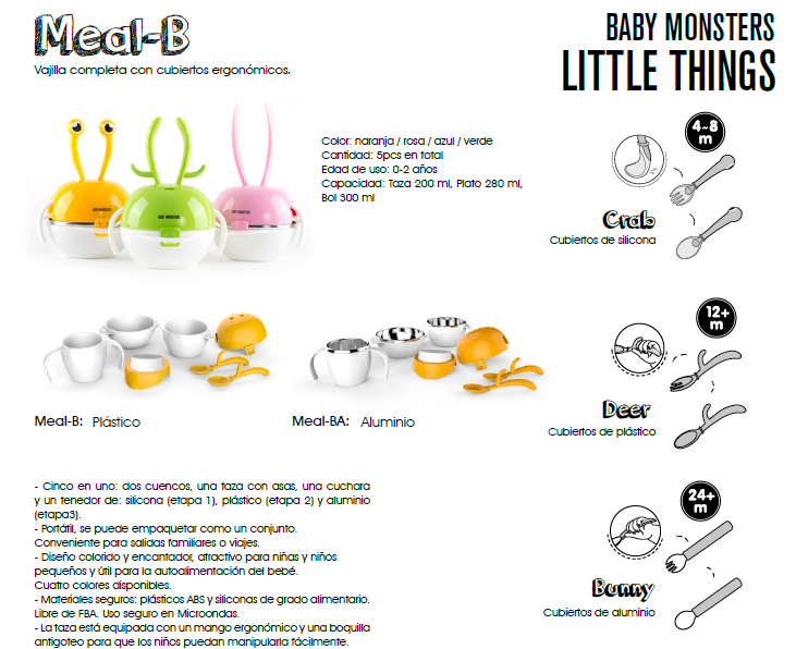 Meal B vajilla completa con cubiertos ergonomicos aluminio o plastico b monster