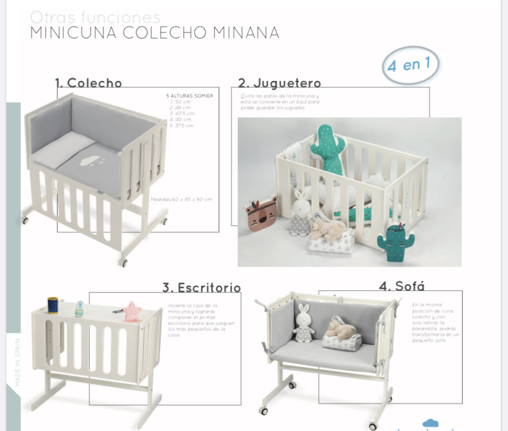 - Medidas de la minicuna: 55 x 85 x 90 cm.