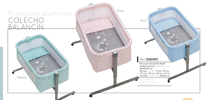 Primeramente la Minicuna colecho con vestidura textil . Exhibe un estilo encantador con estrellas por su alrededor disponible en color gris, rosa o azul. Sin embargo muy chula y con 3 funciones: minicuna normal, colecho o balancín.