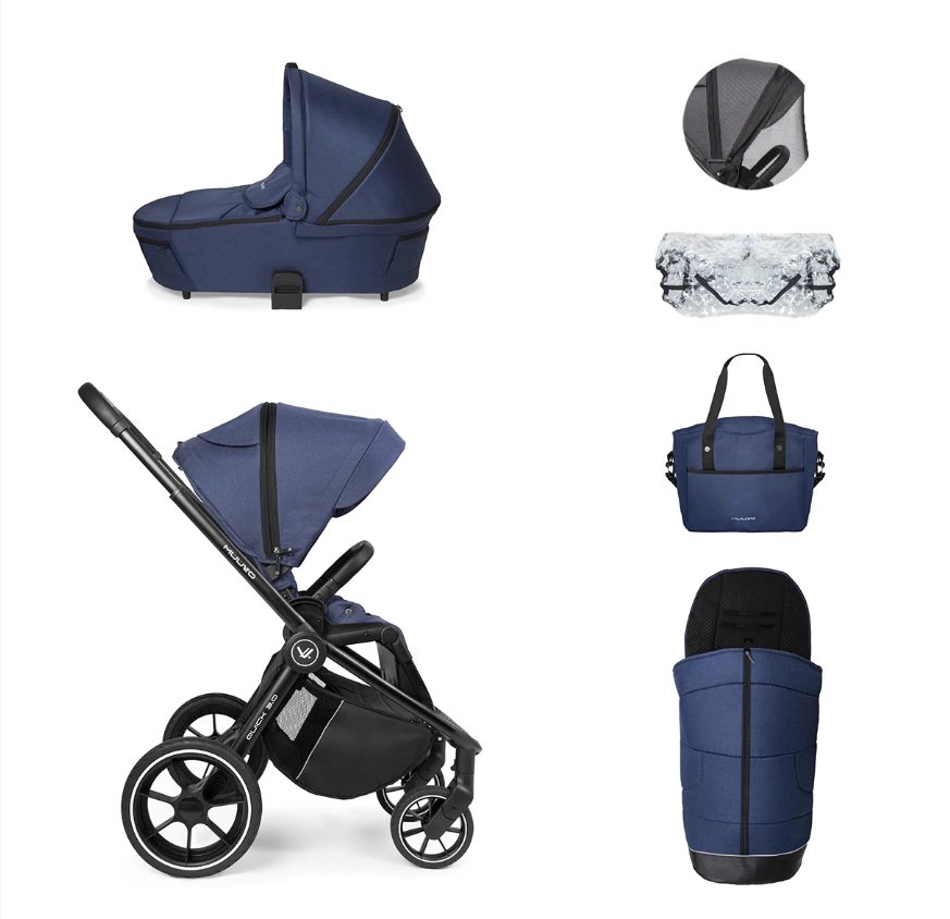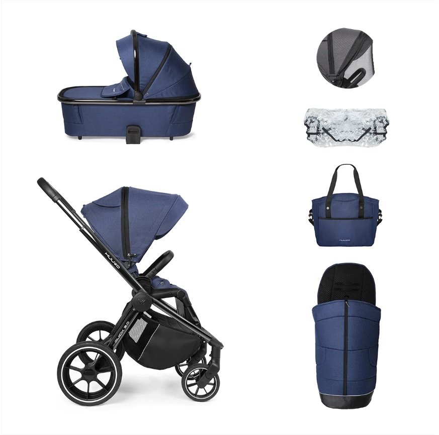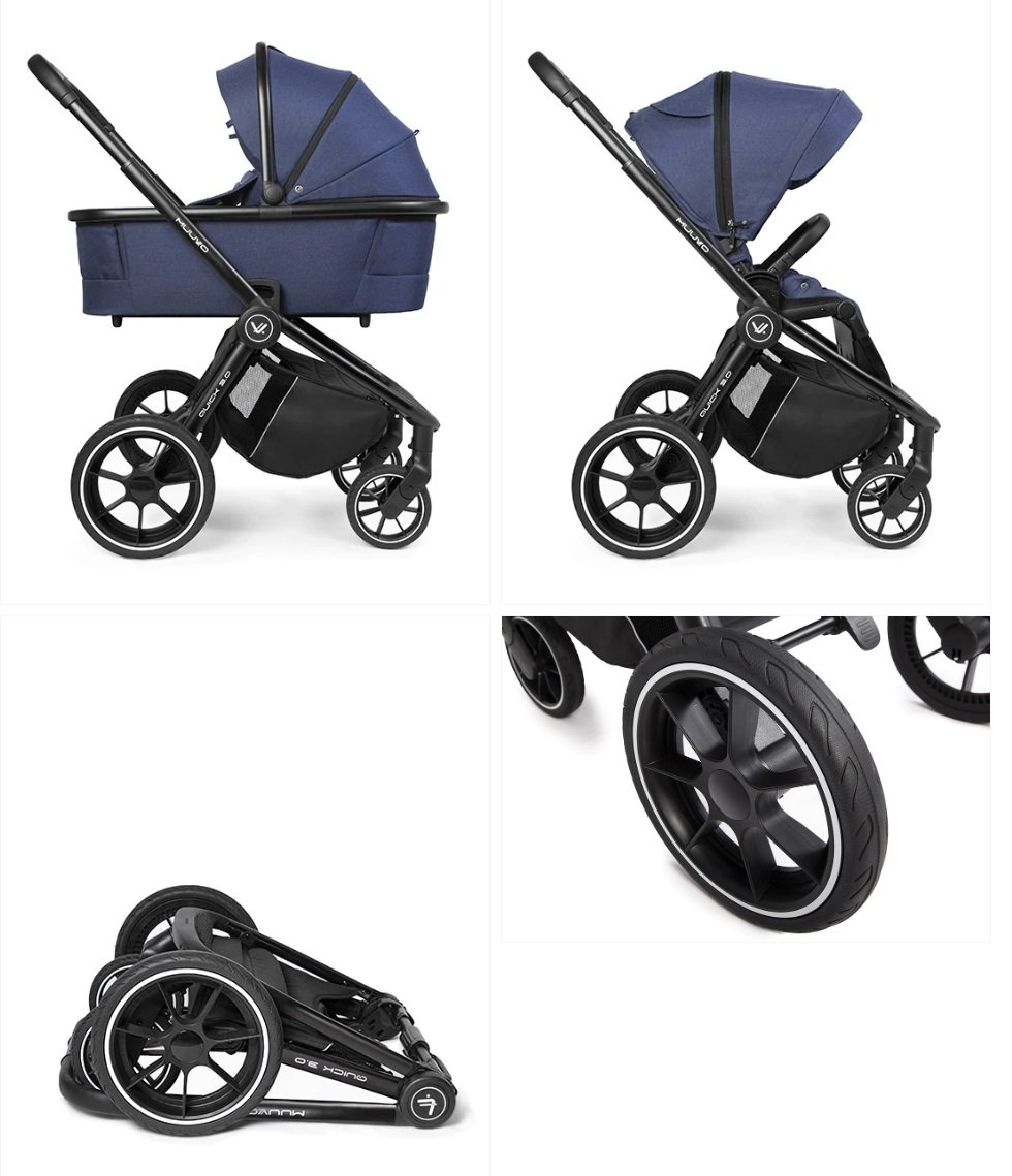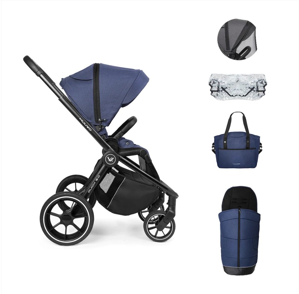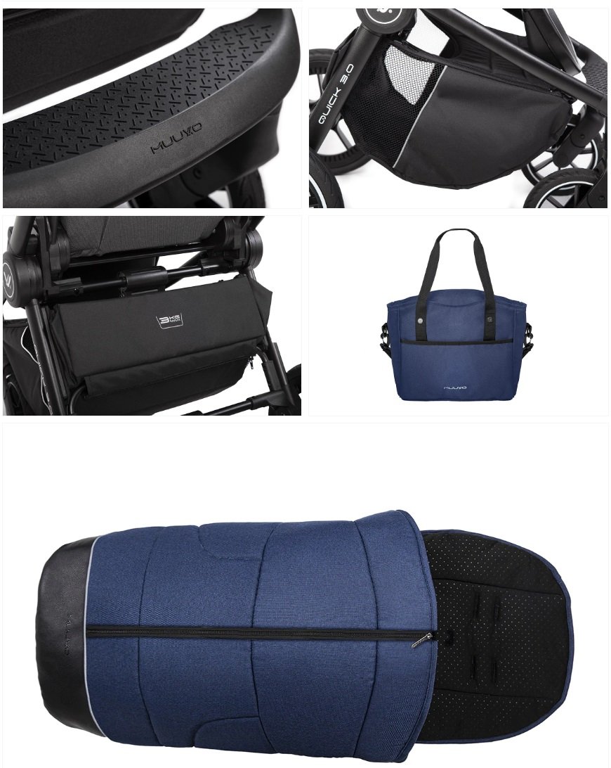 Muuvo quick 3.0 azure blue con accesorios incluye en PACK : Chasis, ruedas, asiento, cesta, burbuja de lluvia, mosquitera, saco y bolso. Vendido por separado: capazo XL, capazo y adaptadores para silla de auto.
