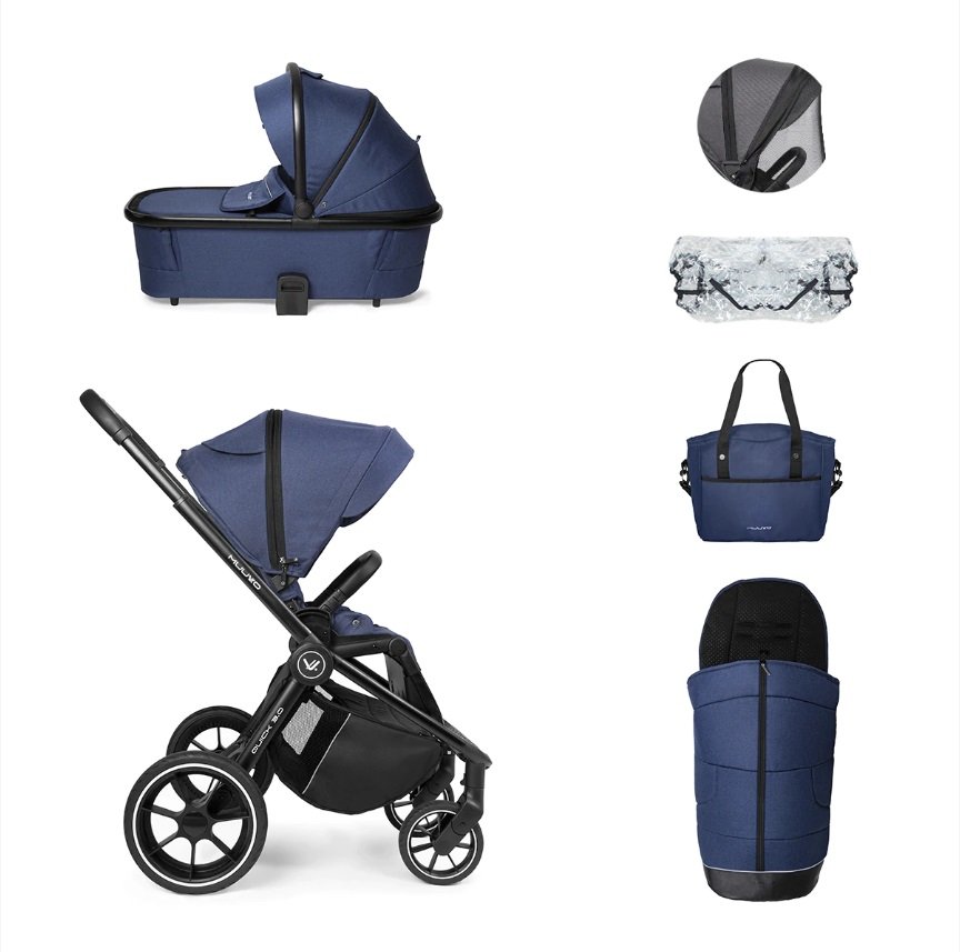 - Full pack: chasis, ruedas, asiento, cesta, burbuja de lluvia, mosquitera, colchoneta reversible, saco y bolso.