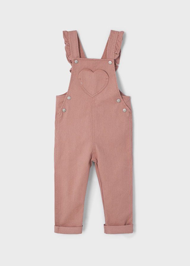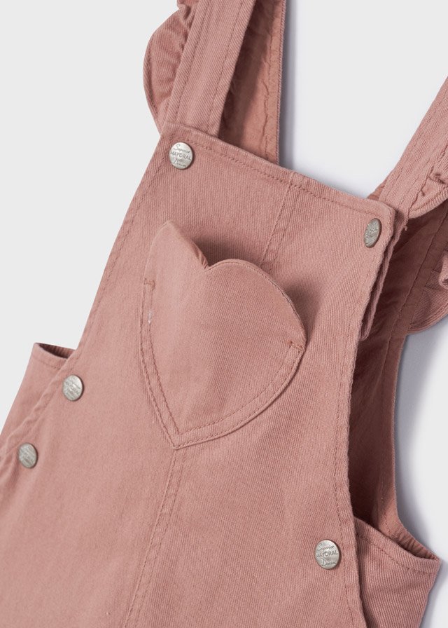 Original pantalón peto para niña. Cierre con botones a presión en la parte delantera.