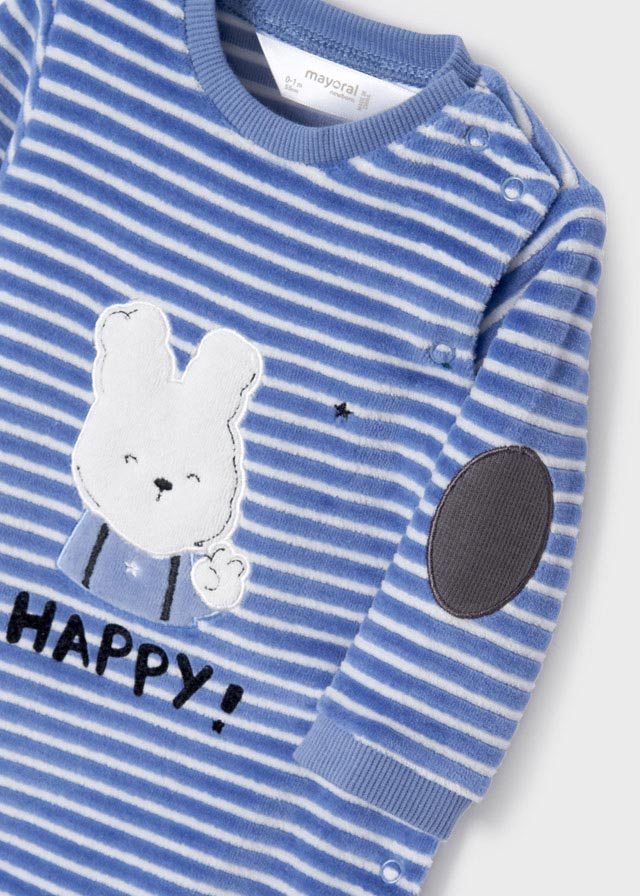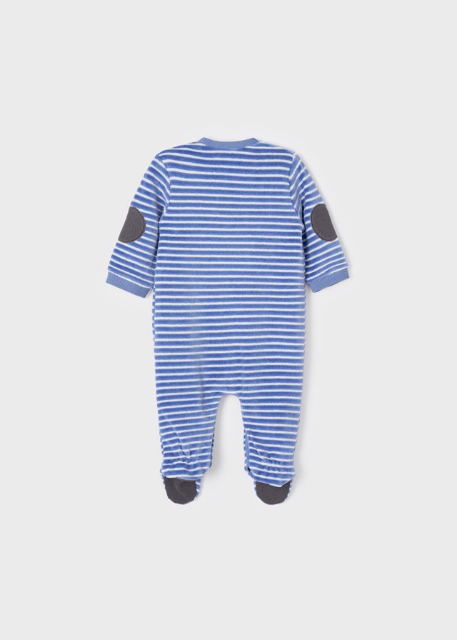 2 Manga larga para recién nacido. Cierre lateral con botones a presión. Cierre con botones a presión en la entrepierna para facilitar la puesta de la prenda. Motivo de rayas. Las tallas mayores de este modelo (12 y 18 meses) presentan una suela antideslizante.