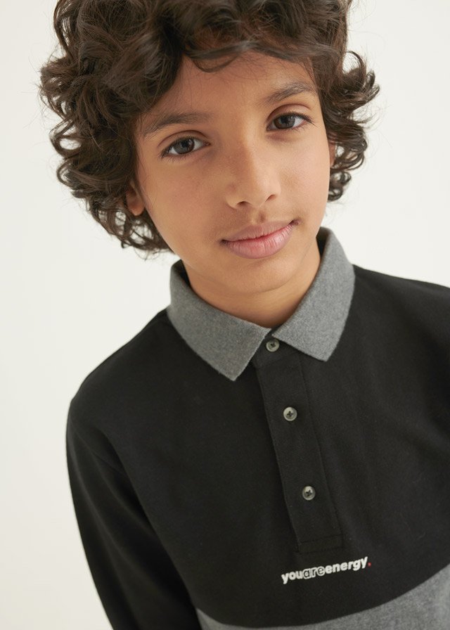 De manga larga para chico. Cuello de polo clásico. Suave tejido de algodón elástico.