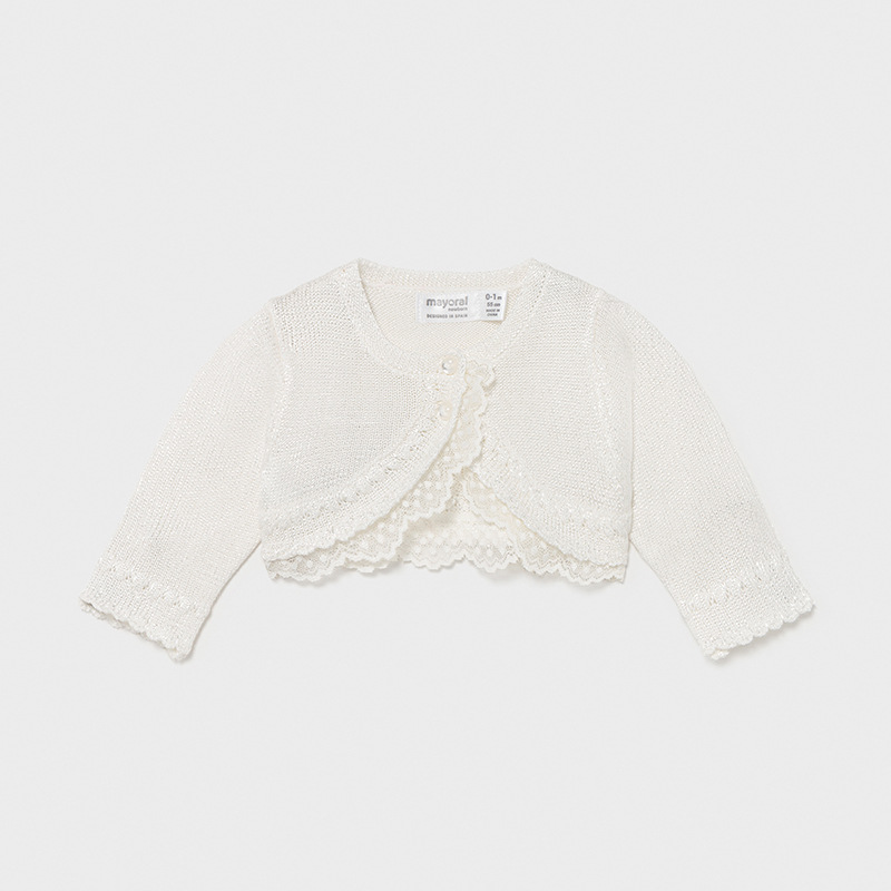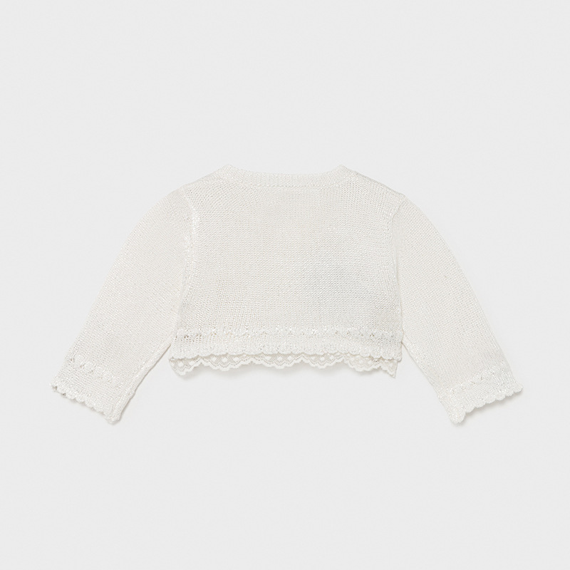 De manga larga para recién nacida niña. Cuello redondo. Tejido de punto tricotosa fino de tacto suave y agradable.