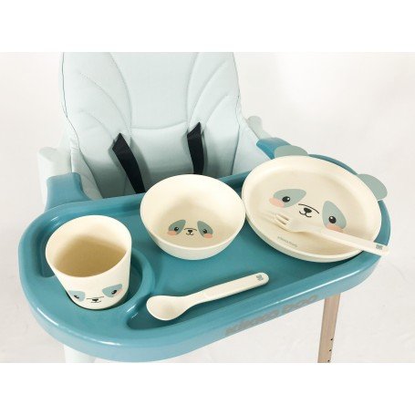 Esta vajilla es muy completa: el Juego de 5 piezas está compuesto por un plato llano para comidas sólidas; un Bol ideal para papillas; Tenedor y Cuchara con tamaño ideal para las primeras comidas del bebé y un vaso para que aprenda a beber solito.