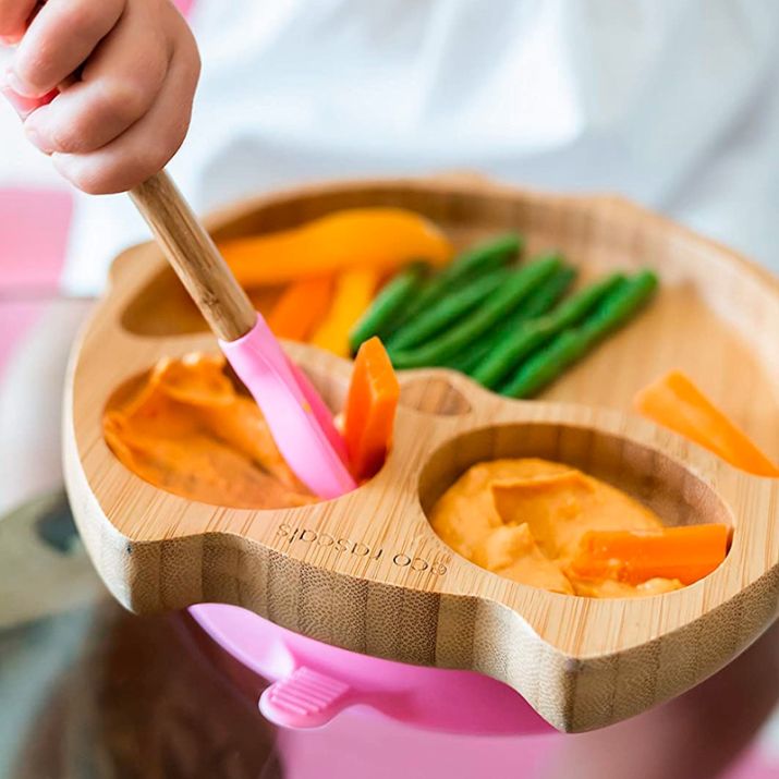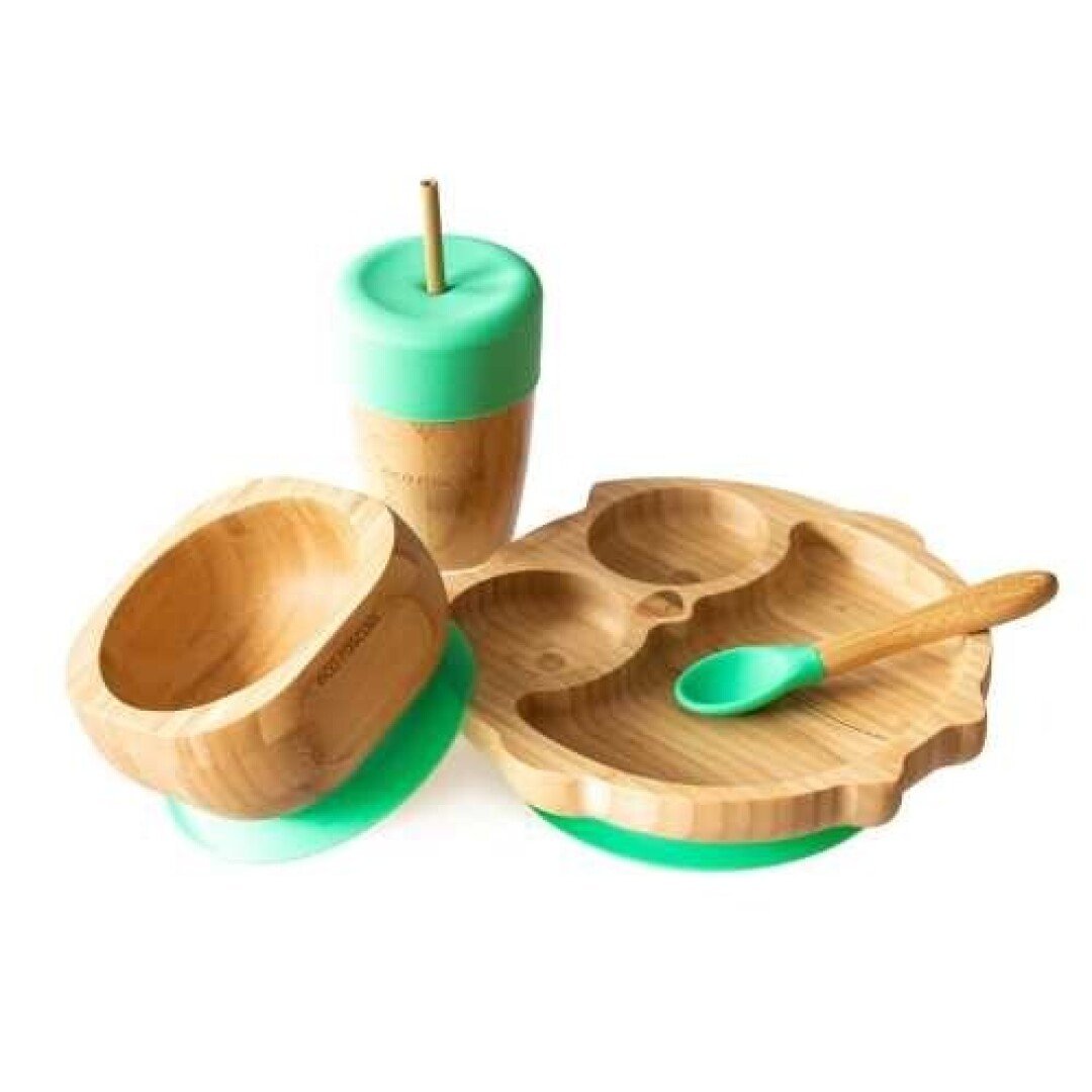 Todos los componentes de este set de vajilla infantil está hecho de bambú eco, que es un material natural , orgánico, reciclable, biodegradable, cultivado y cosechado sin el uso de pesticidas.