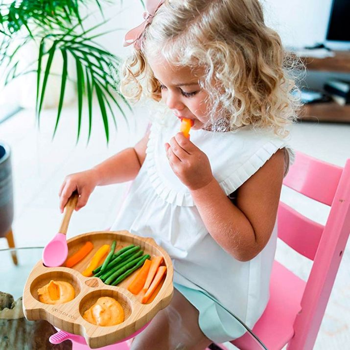 Incluye un plato de bambú con 3 compartimientos y ventosa de silicona para niños pequeños, cuenco con ventosa de silicona, cuchara y taza con alimentador de pajitas de silicona y dos pajitas.