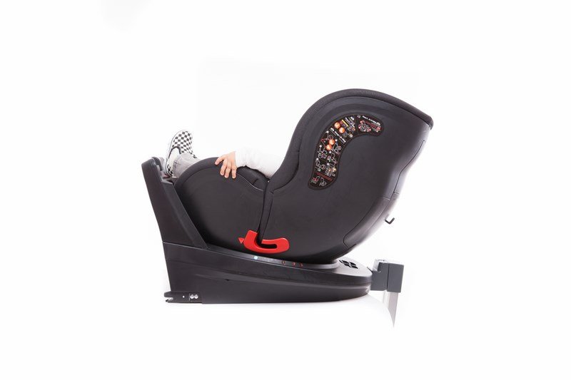 Esta silla permite su giro de 360º en cualquier posición del reclinado sin necesidad de retirar al niño. Giro de 360º mediante su mecanismo de pulsación instalado en la parte delantera de rápido acceso.
