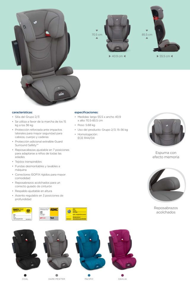 - Ficha Técnica de Silla de auto Traver de Joie: