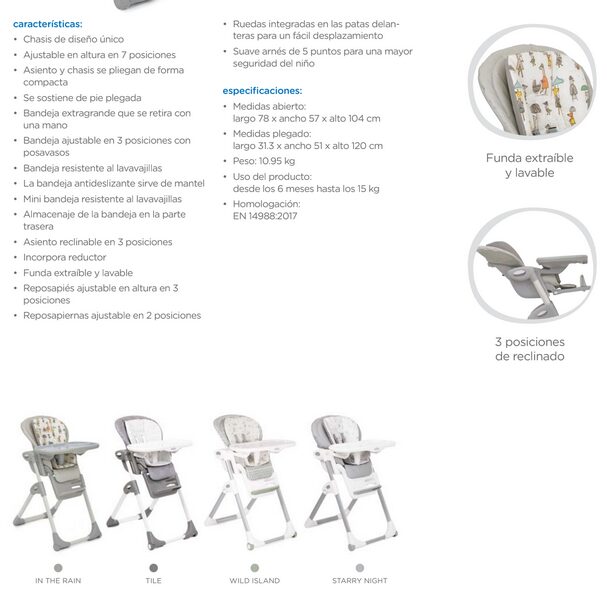Ahora el nuevo modelo con colchoneta extra incluida. Su estilo, Sin embargo funcionalidad del chasis y cómodo acceso a la mesa harán la trona Mimzy en un imprescindible de la casa. Incorpora un arnés de 5 puntos para aportar mayor seguridad.Reclina en 3 posiciones.