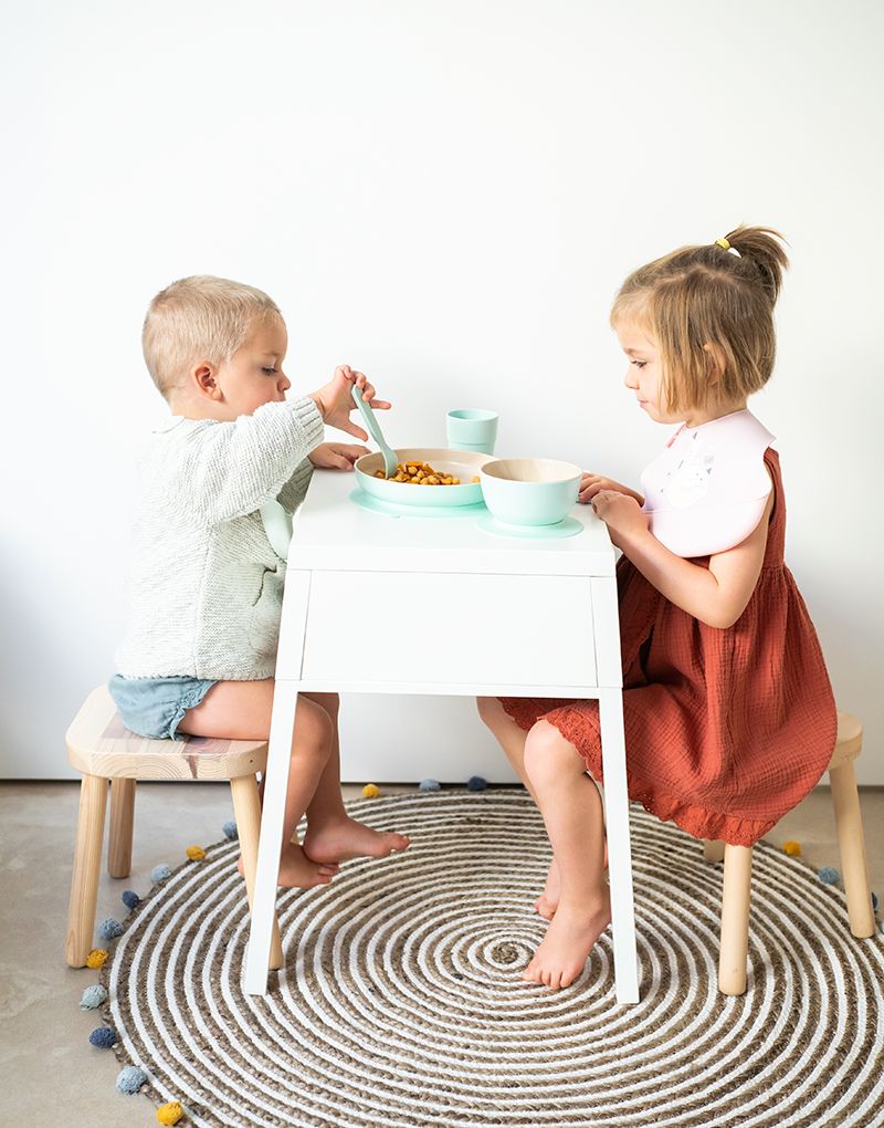 - ¡Antideslizante! Con una práctica ventosa en su base que lo fija a la mesa. ¡A prueba de bebés rebeldes!